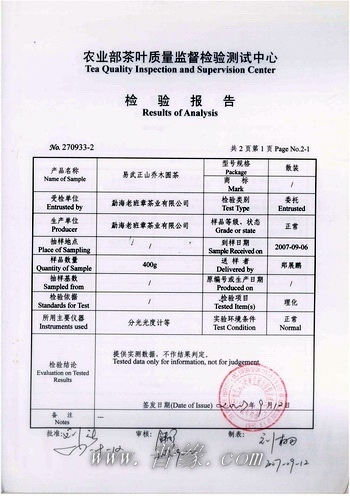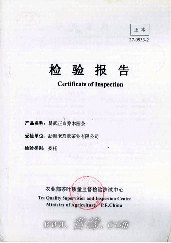 易武正山乔木圆茶-检验报告
