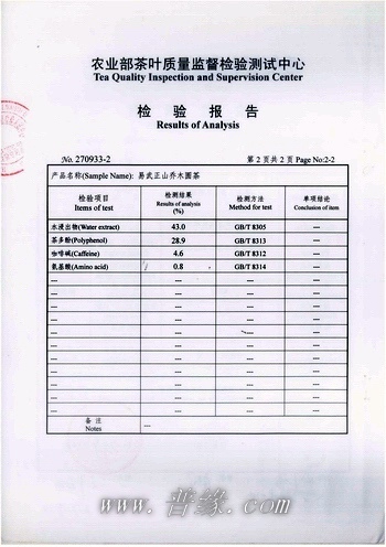 普缘乔木圆茶-检验报告